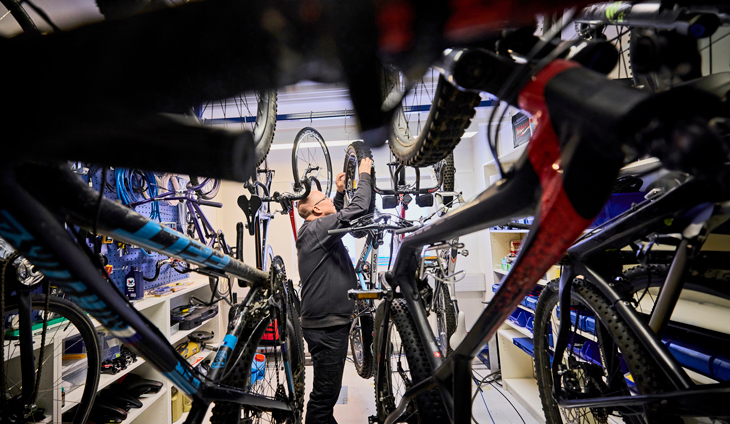 Pienteollisuusrakennus Lahden kupeessa Nastolassa näyttää ulospäin tavanomaiselta. Talon sisällä voisi kuitenkin luulla päätyneensä Pelle Pelottoman työpajaan. Avarissa työtiloissa on vieri vieressä erikoisen näköisiä laitteita, joissa pyörii polkupyörän renkaita vinhaa vauhtia.