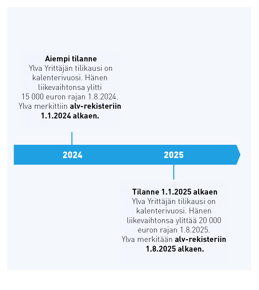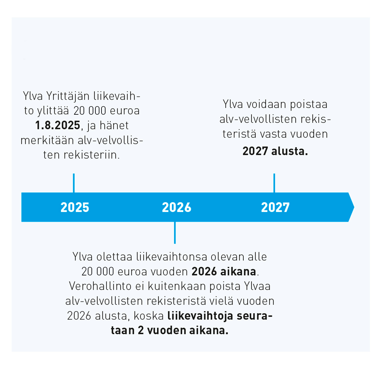 • Alv-rekisteröintivelvollisuus vasta alv-alarajan ylityttyä.